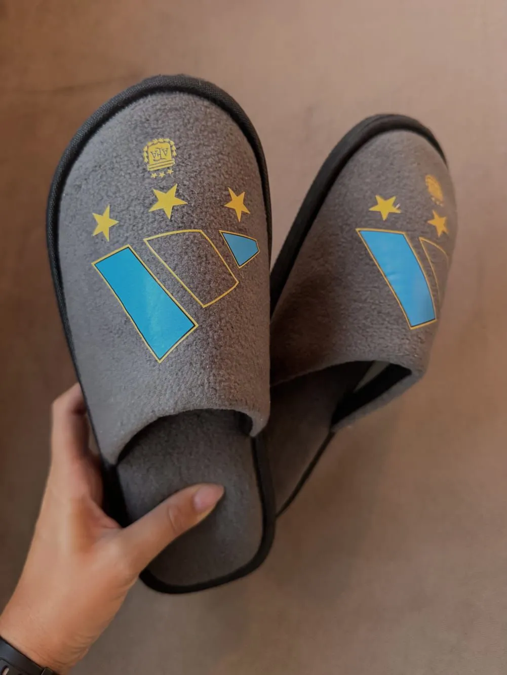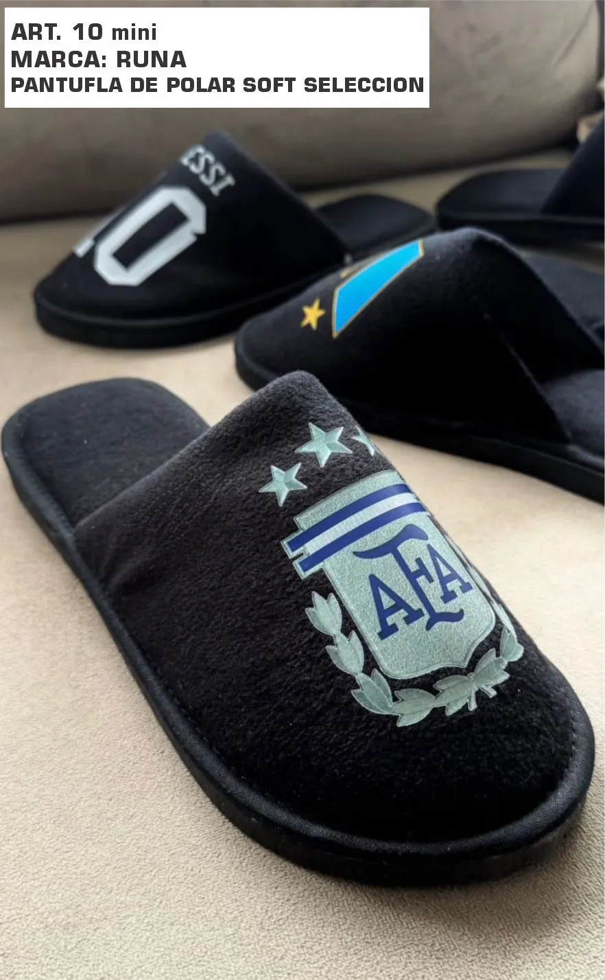 PANTUFLA POLAR SOFT SELECCION NIÑOS. TALLES: 25 AL 34. COLORES: NEGRO/AFA TURQUESA - GRIS/AFA TURQUESA - NEGRO/AFA DORADO - GRIS/AFA DORADO - NEGRO/SELECCION - GRIS/SELECCION - NEGRO/LEO - GRIS/LEO