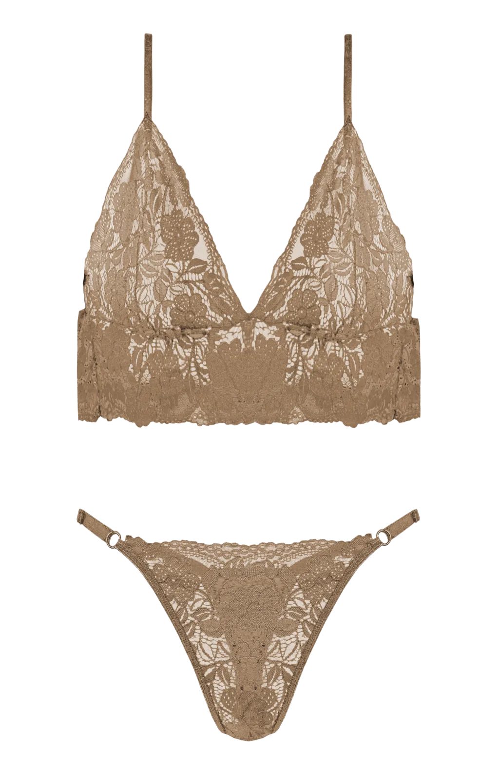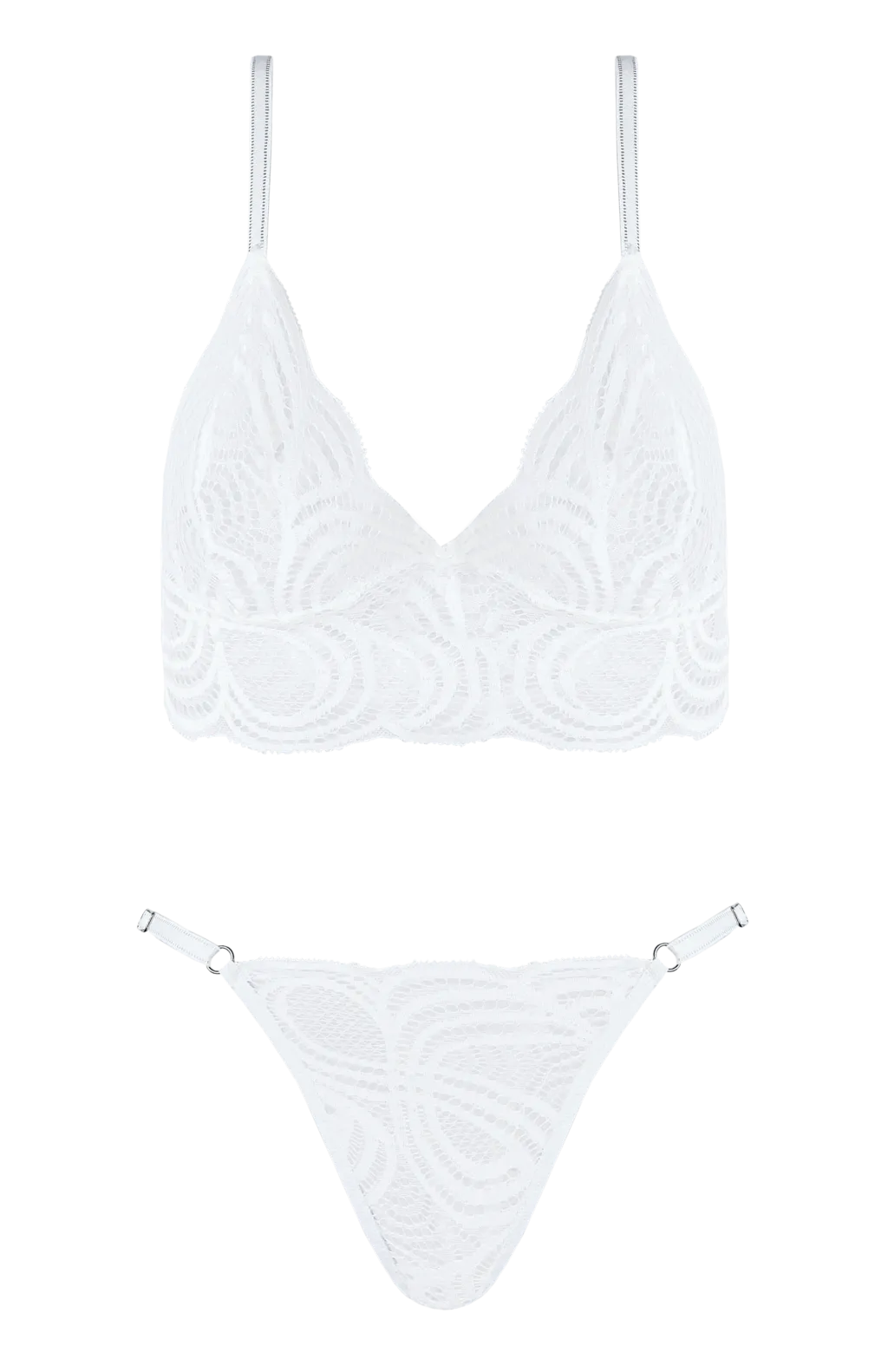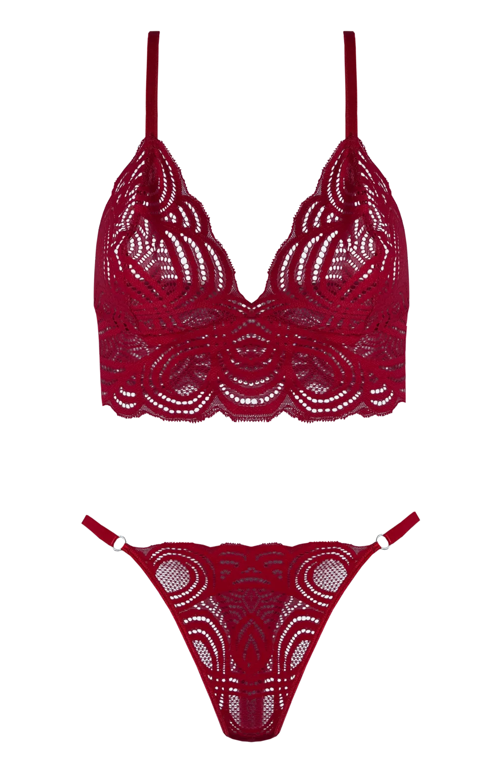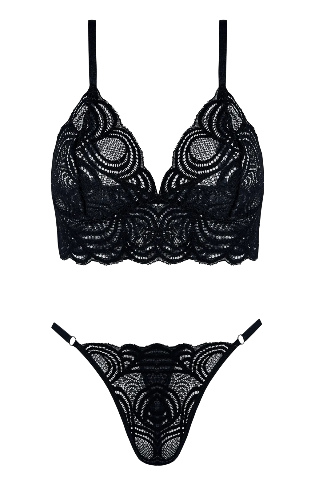 CONJUNTO TRIANGULO SIN TAZA DE PUNTILLA Y TANGA LESS TALLES 85-90-95-100