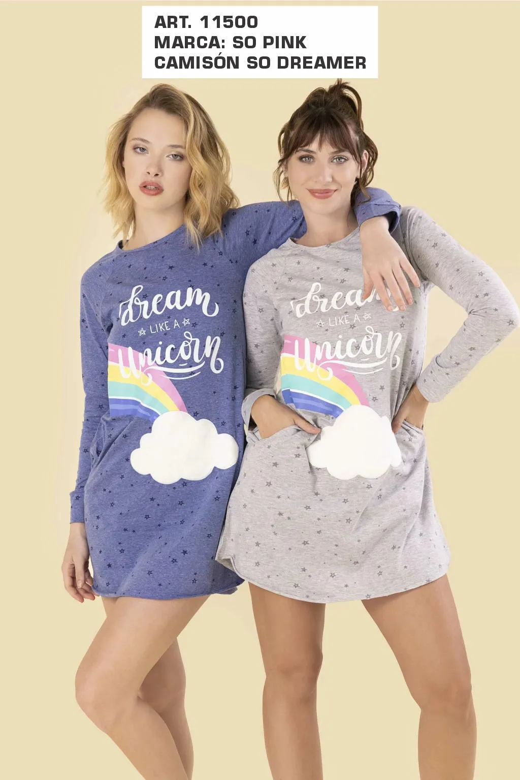 CAMISÓN SO DREAMER. TALLES: S AL XL. COLORES: AZUL - GRIS
