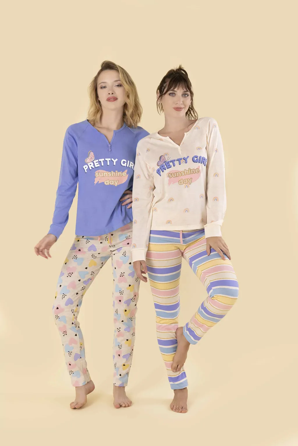 PIJAMA SO SUNSHINE. TALLES: S AL XL. COLORES: HUESO - LAVANDA