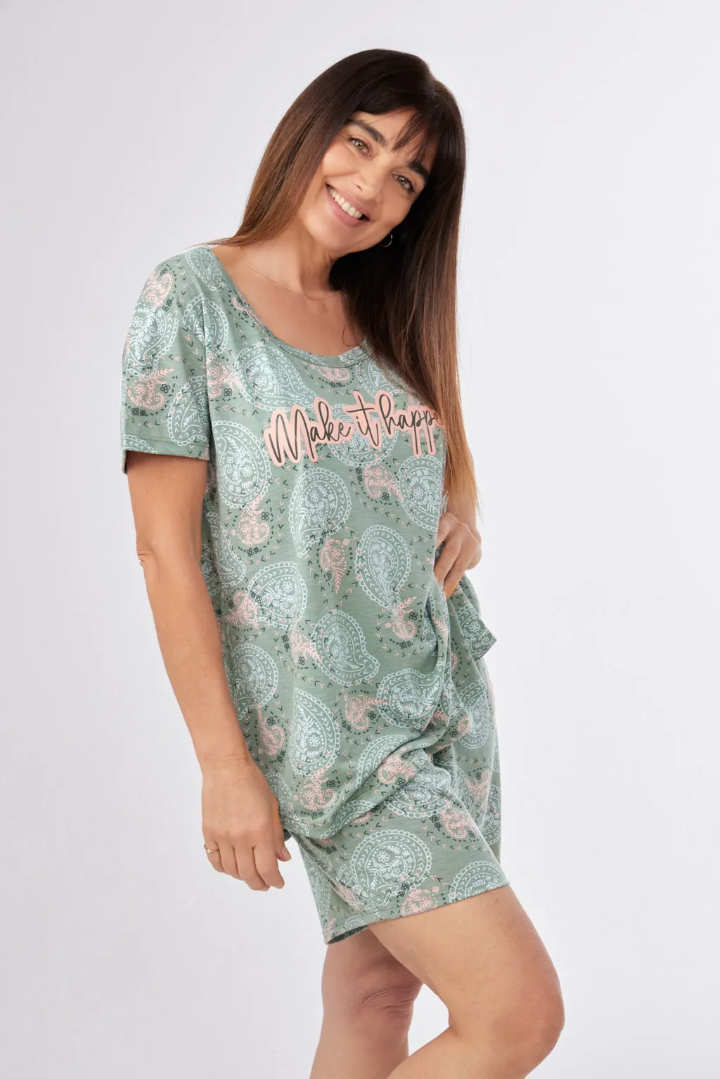 PIJAMA SO POSITIVE. TALLES: M AL XXL. COLORES: VERDE - TOSTADO