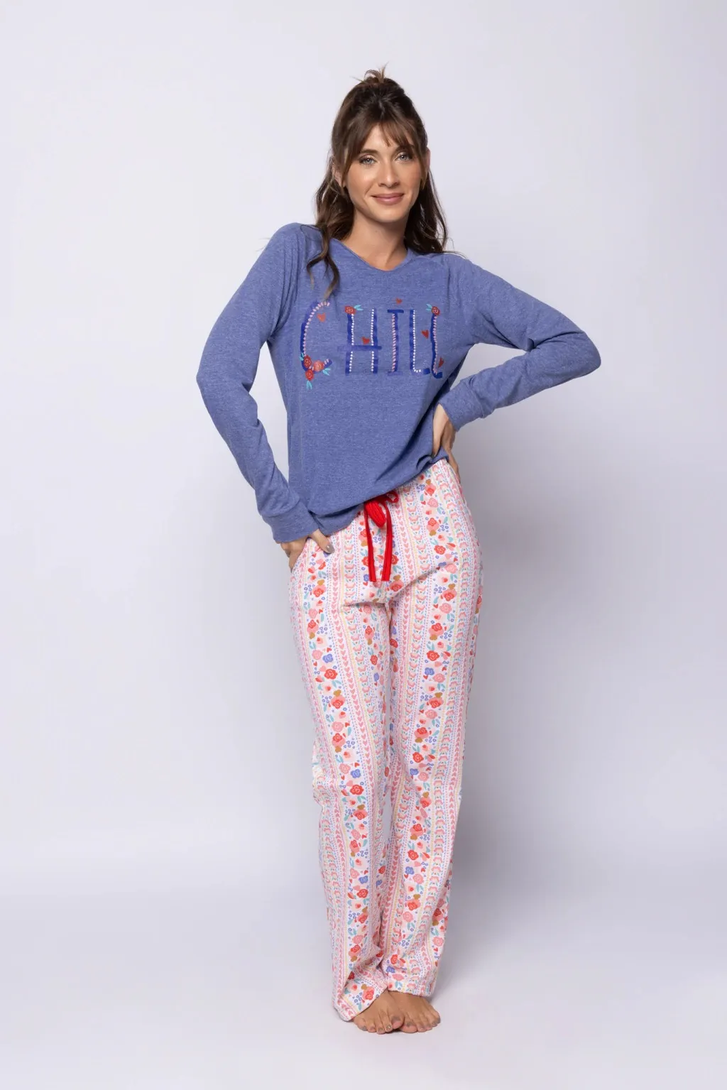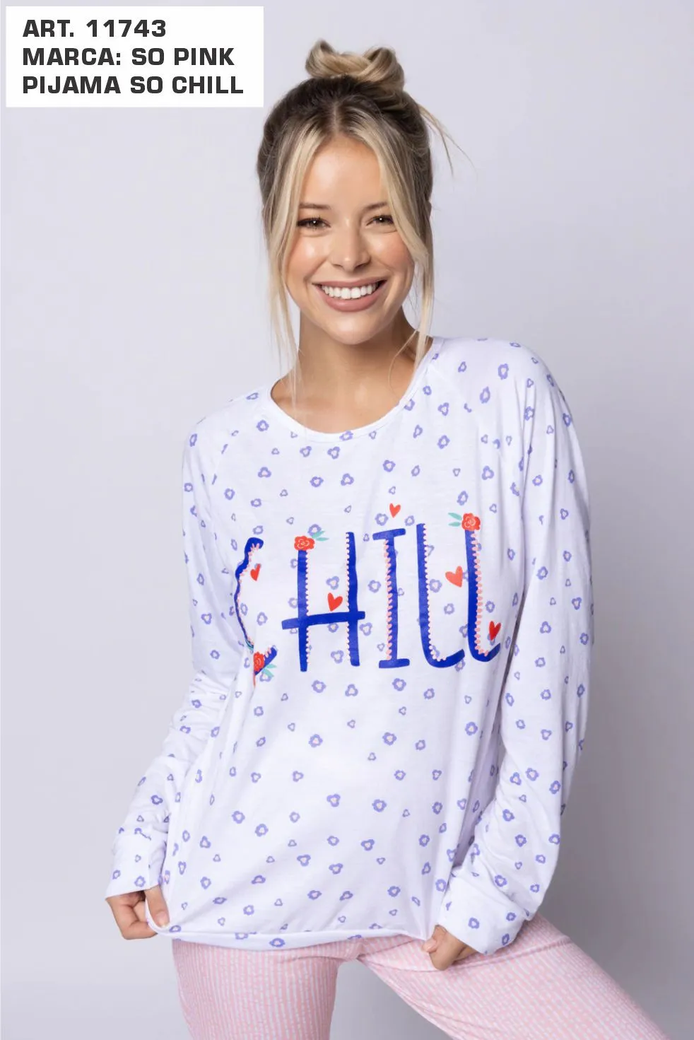 PIJAMA SO CHILL. TALLES: S AL XL. COLORES: AZUL - BLANCO