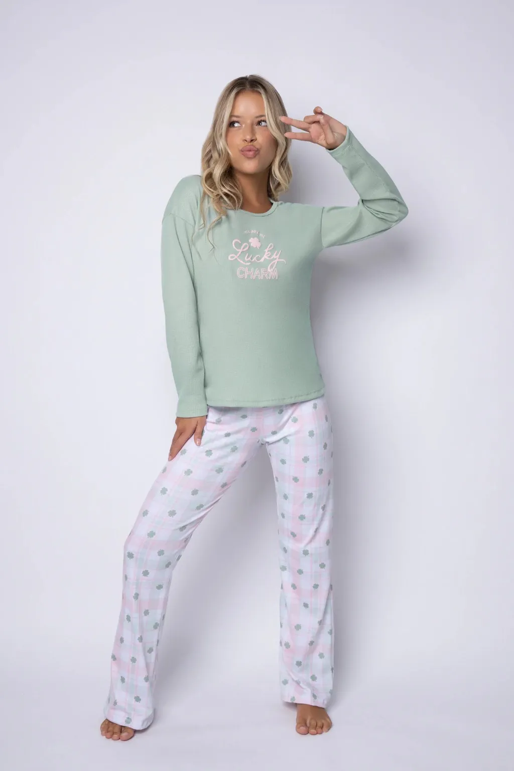 PIJAMA SO LUCKY. TALLES: S AL XL. COLORES: AZUL - VERDE
