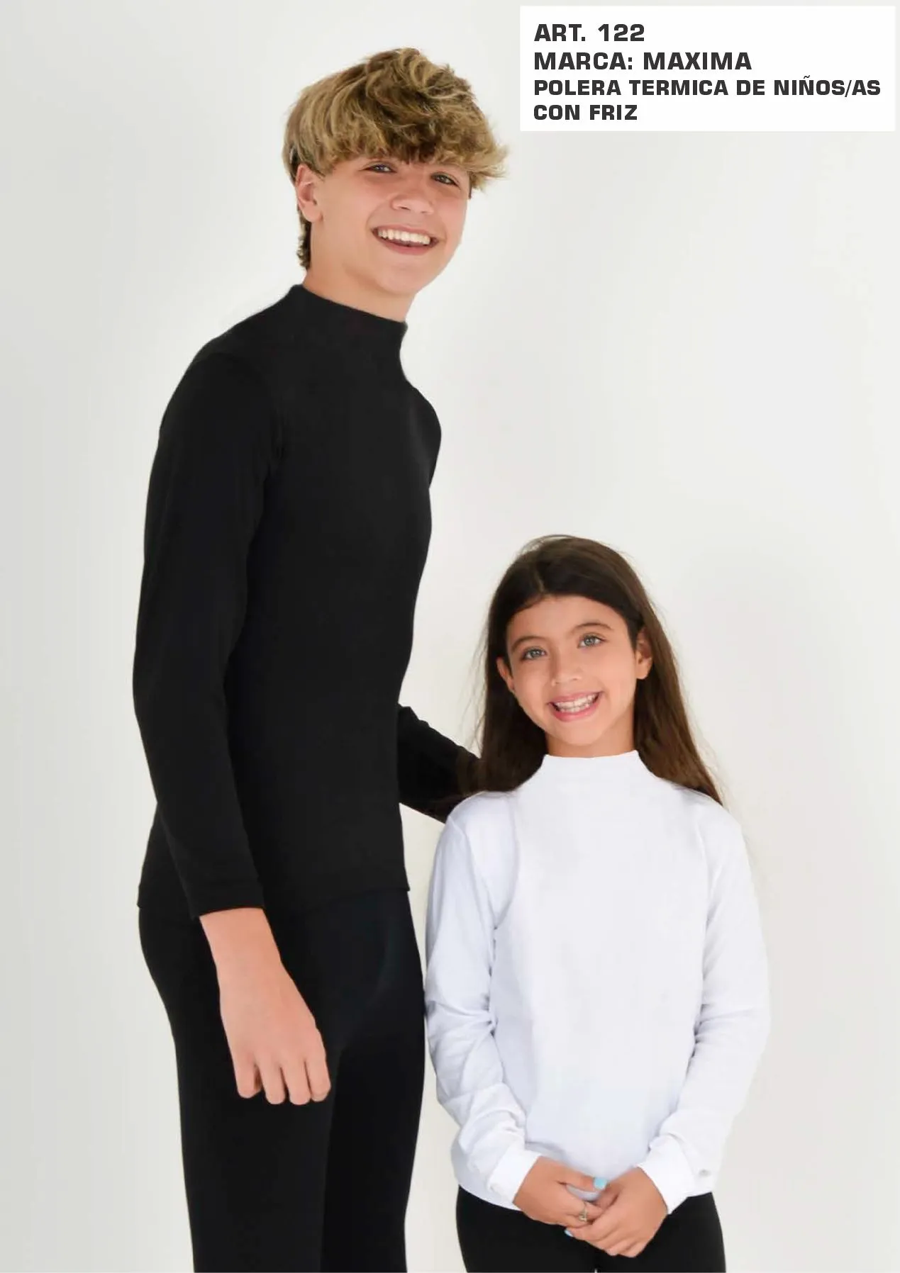 POLERA TERMICA DE NIÑOS/AS CON FRIZA. TALLES: 4 AL 16. COLORES: NEGRO - BLANCO - AZUL