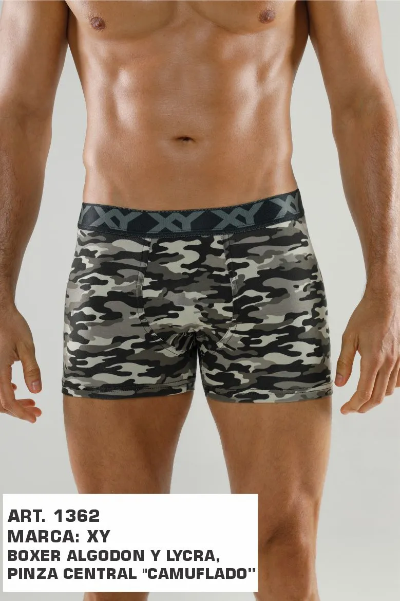 BOXER ALGODON Y LYCRA, PINZA CENTRAL "CAMUFLADO". TALLES: S AL XXL. COLORES: UNICO