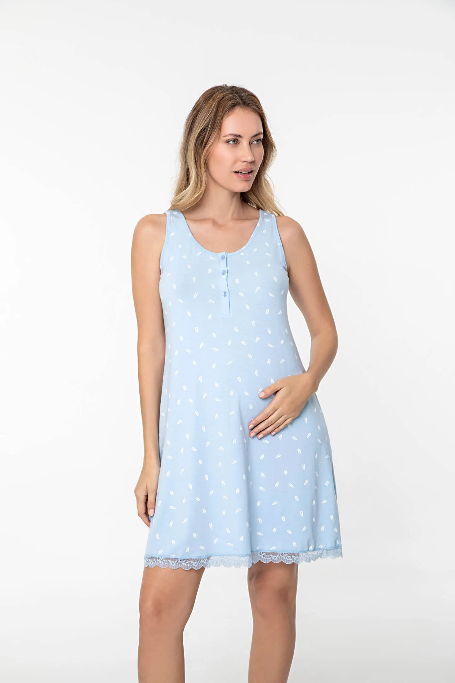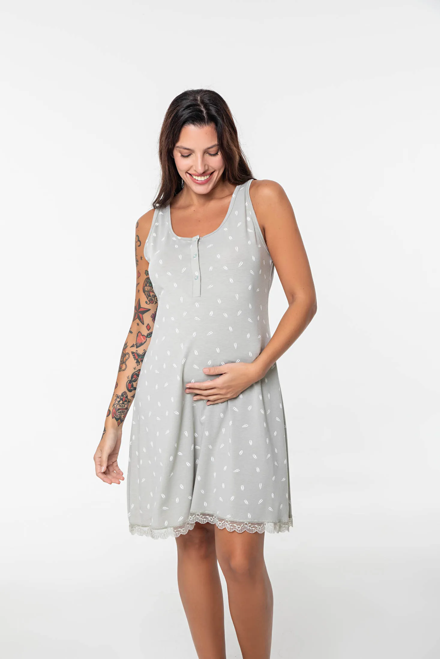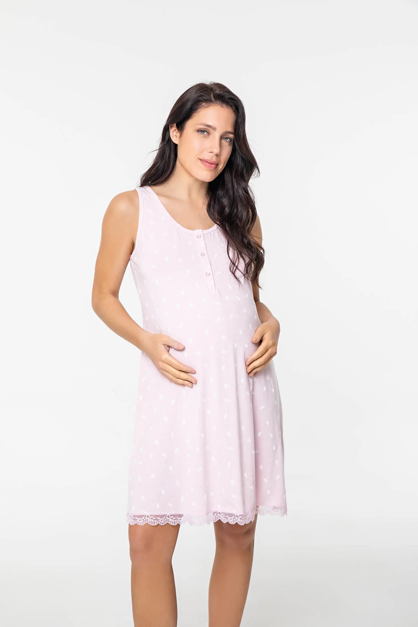 CAMISON MATERNAL ESTAMPADO EN MODAL CON PUNTILLA "MILAN". TALLES: 1(S) AL 4(XL). COLORES: ROSA - CELESTE - MUSGO