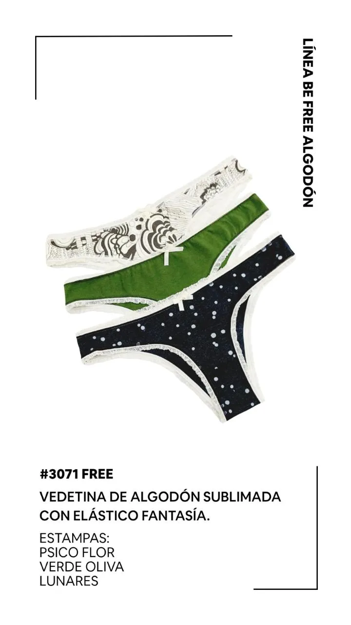 PACK POR TRES UNIDADES VEDETINA ALGODON Y LYCRA ESTAMPADO. ELASTICO FANTASIA EN CINTURA Y PIERNAS. TALLE: ESPECIAL. COLORES: SURTIDOS