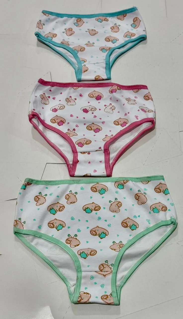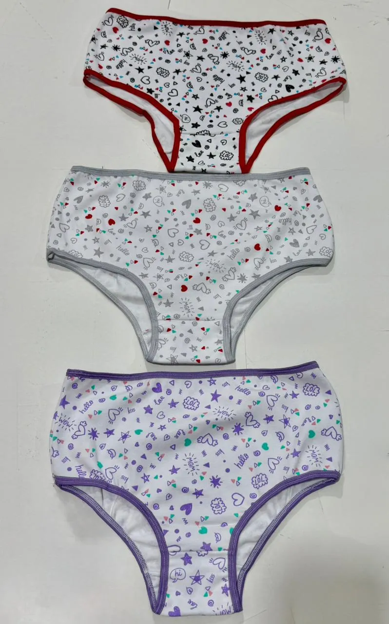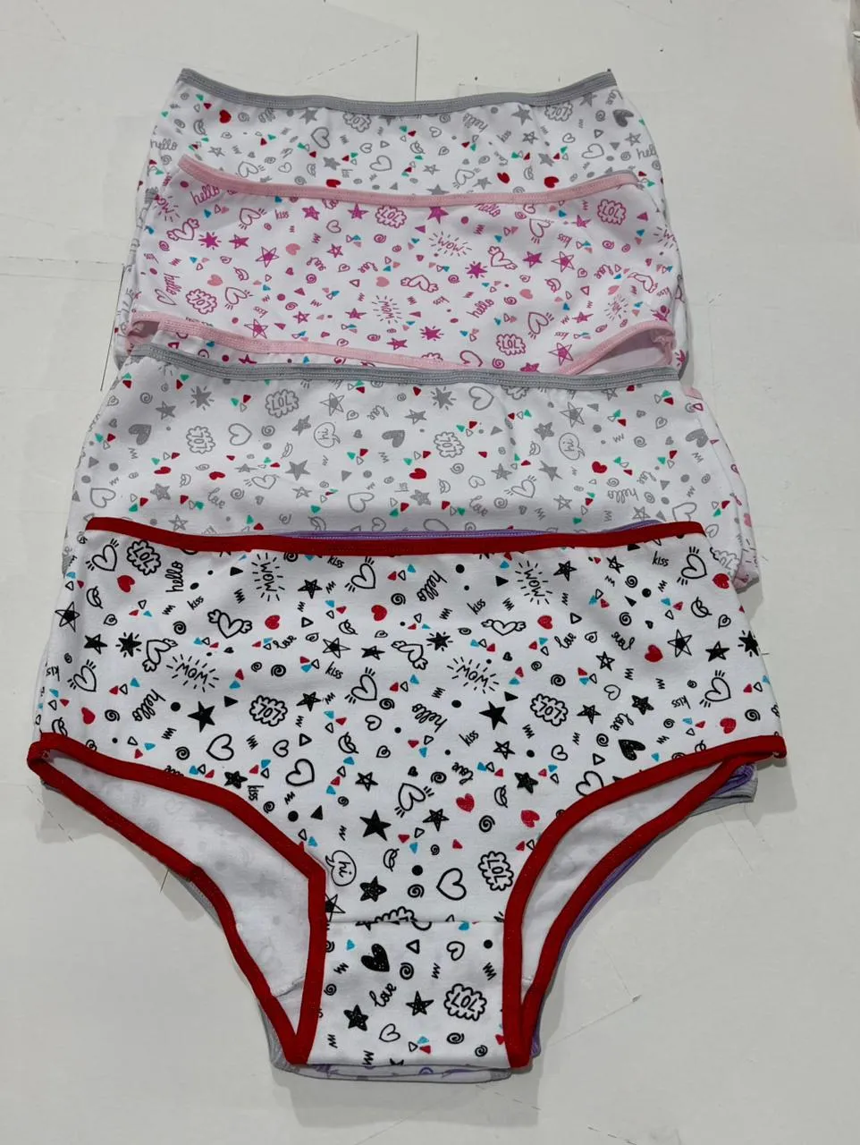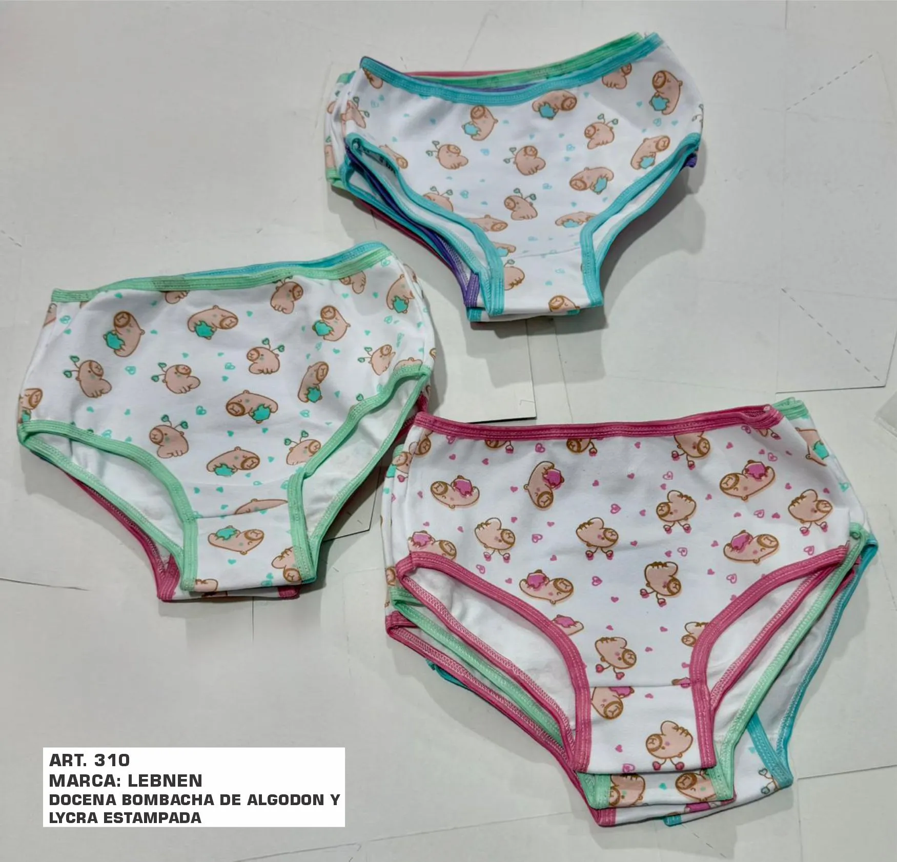 DOCENA BOMBACHA DE ALGODON Y LYCRA ESTAMPADA. SURTIDA DE TALLES, CUATRO BOMBACHAS POR TALLE. TALLES: 1(4) - 2(6 AL 8) - 3(10). COLORES: BLANCAS ESTAMPADAS