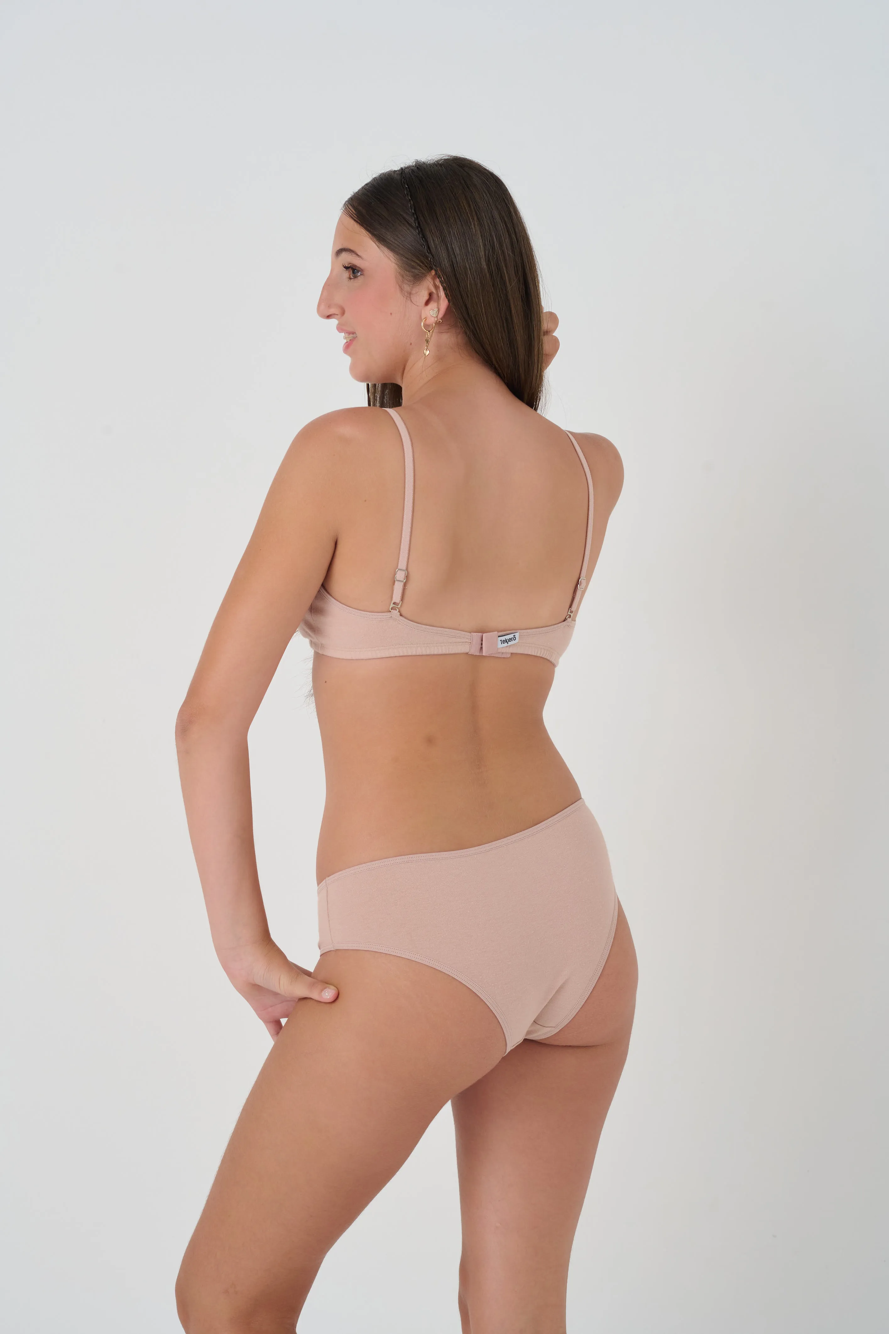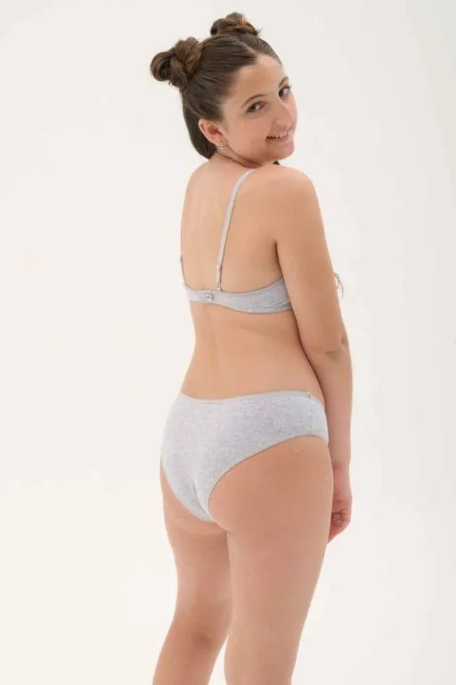 CONJUNTO CON CORPIÑO CON BONDEADO LISO Y TIRO CORTO DE ALGODON Y LYCRA. TALLES: 12 AL 18. COLORES: BLANCO - NEGRO - GRIS - AVELLANA - CORAL - ROSA ANTIGUO