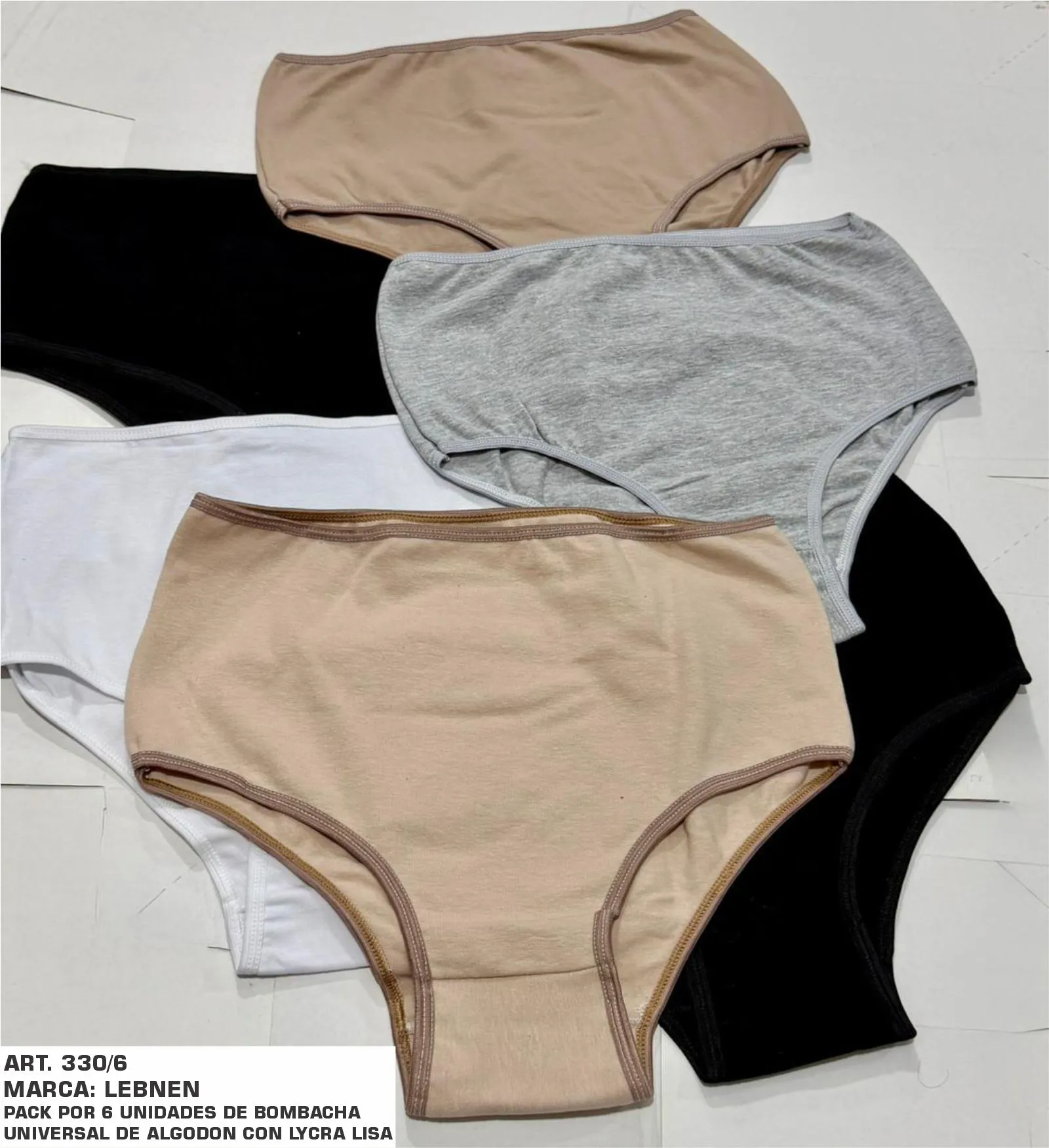 PACK POR 6 UNIDADES DE BOMBACHA UNIVERSAL DE ALGODON CON LYCRA LISA. TALLE: UNICO. COLORES: SURTIDOS