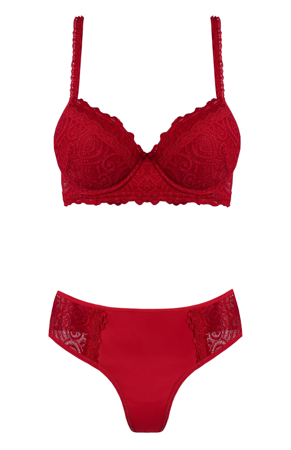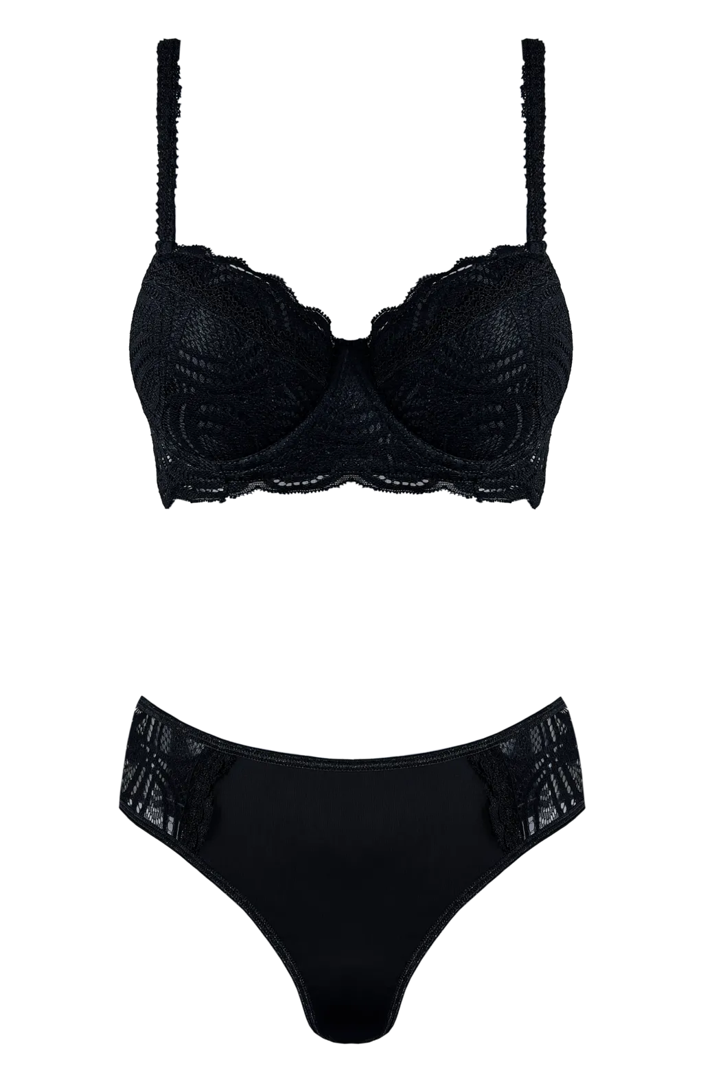 CONJUNTO TAZA SOFT MICRO FIBRA CON DOBLE PUNTILLA Y CULOTTE LESS. TALLES: 85 AL 100. COLORES: BLANCO - NEGRO - ROJO