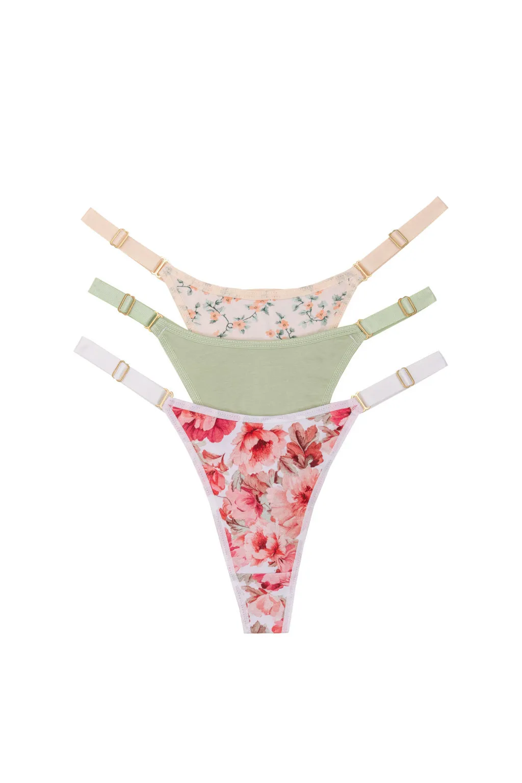 PACK POR TRES UNIDADES DE TANGAS CAVADAS DE ALGODON LYCRA ESTAMPADO "VINTAGE". TALLE: UNICO. COLORES: SURTIDOS