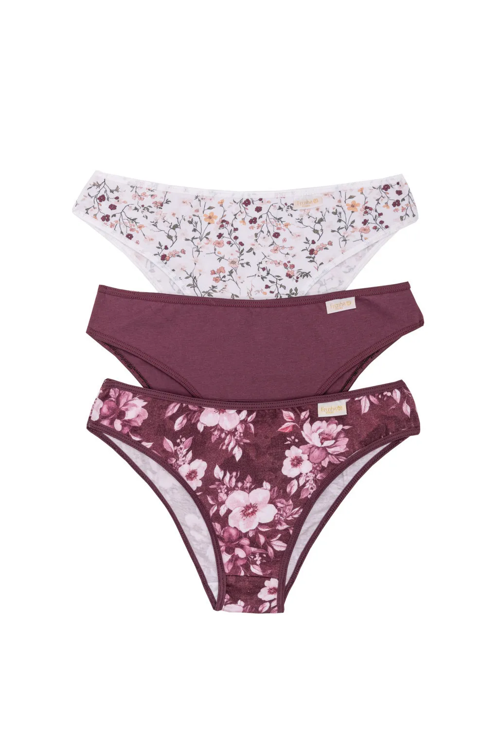 PACK POR TRES UNIDADES DE VEDETINAS DE ALGODON Y LYCRA ESPAMPADA "LIBERTY MALBEC". TALLES: ESPECIAL (L). COLORES: SURTIDOS