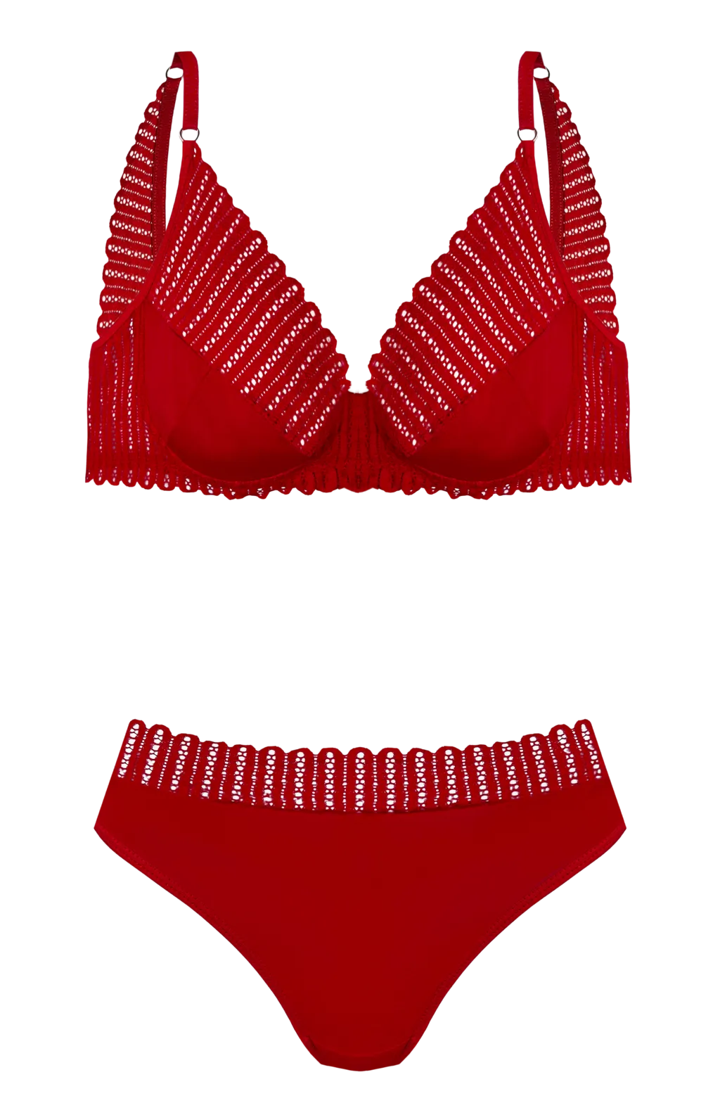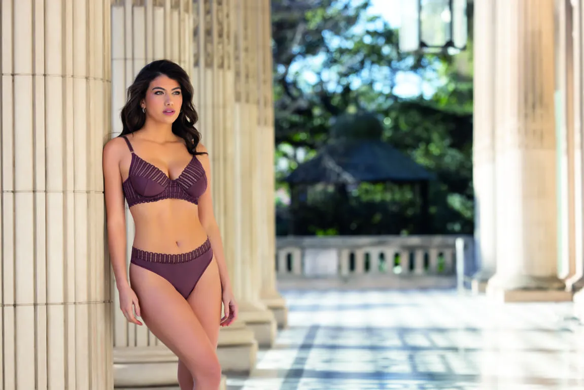 CONJUNTO SIN TAZA CON ARCO DE MICROFIBRA COMBINADA CON PUNTILLA TRAMADO BASTONES Y COLALESS. TALLES: 105 AL 110. COLORES: BLANCO - NEGRO - CHOCOLATE - ROJO