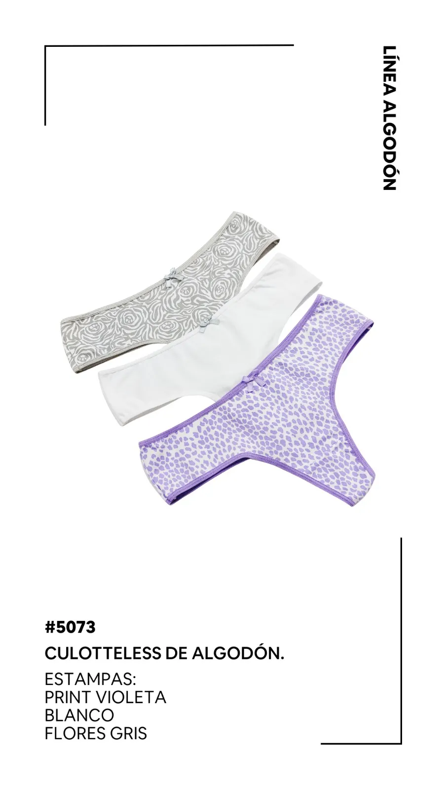 PACK POR TRES UNIDADES DE CULOTE LESS DE ALGODON Y LYCRA ESTAMPADAS ENVIVADAS. TALLE: UNICO. COLORES; SURTIDOS