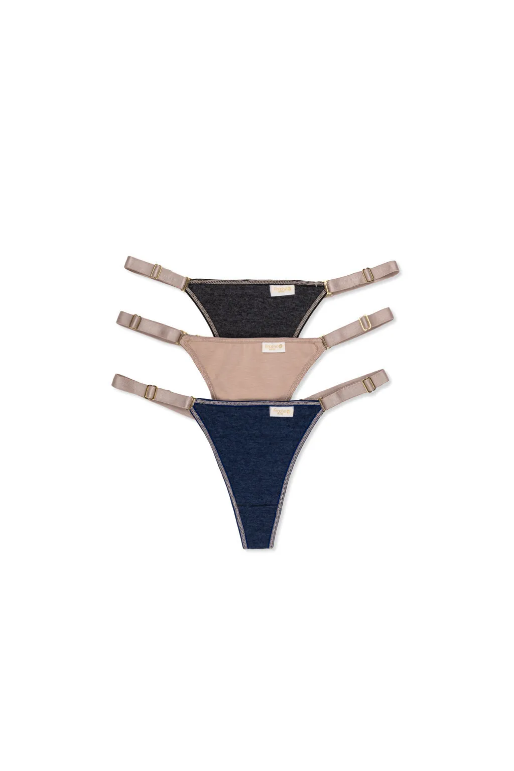 PACK POR TRES UNIDADES DE TANGAS DE ALGODON Y LYCRA LINEA DENIM. TALLE: UNICO. COLORES: SURTIDOS