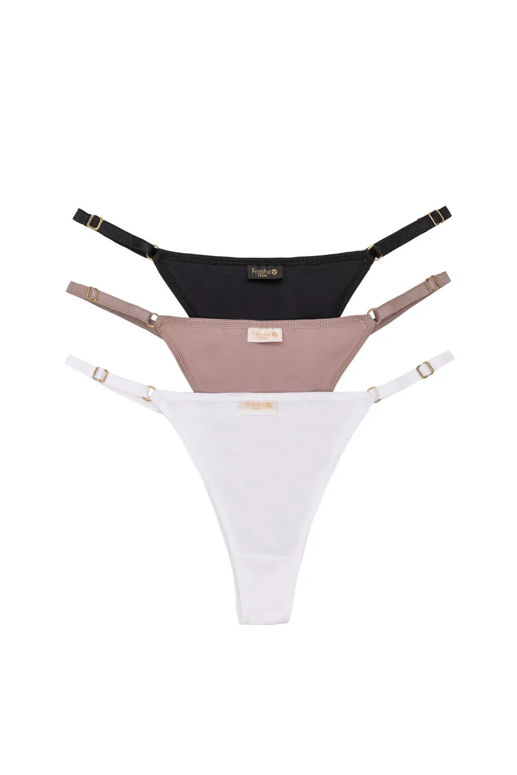 PACK DE TANGAS REGULABLES DE MICROFIBRA X3. TALLE: UNICO. COLORES: SURTIDOS