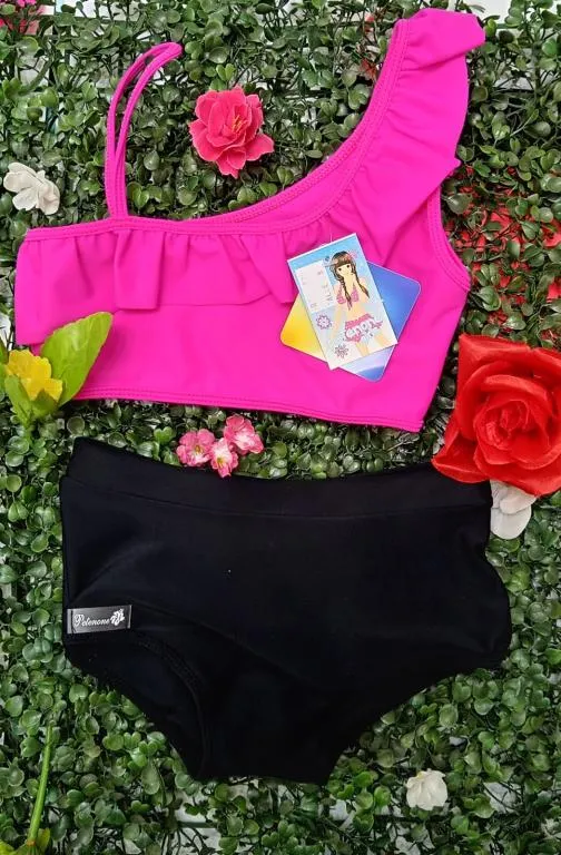 BIKINI NIÑAS SHORT Y TOP. TALLES 12 AL 16. COLORES: ROSA - FUCSIA - NEGRO