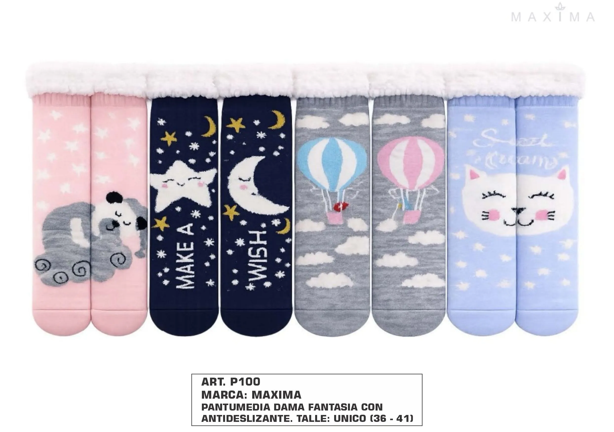 PANTUMEDIA DAMA FANTASIA CON ANTIDESLIZANTE. TALLE: UNICO (36 - 41). COLORES: CELESTE GATITO SWEET DREAMS - AZUL NOCHE MAKE A WISH NOCHE - ROSA CON OSITO DORMILON - GRIS FLY WITH ME