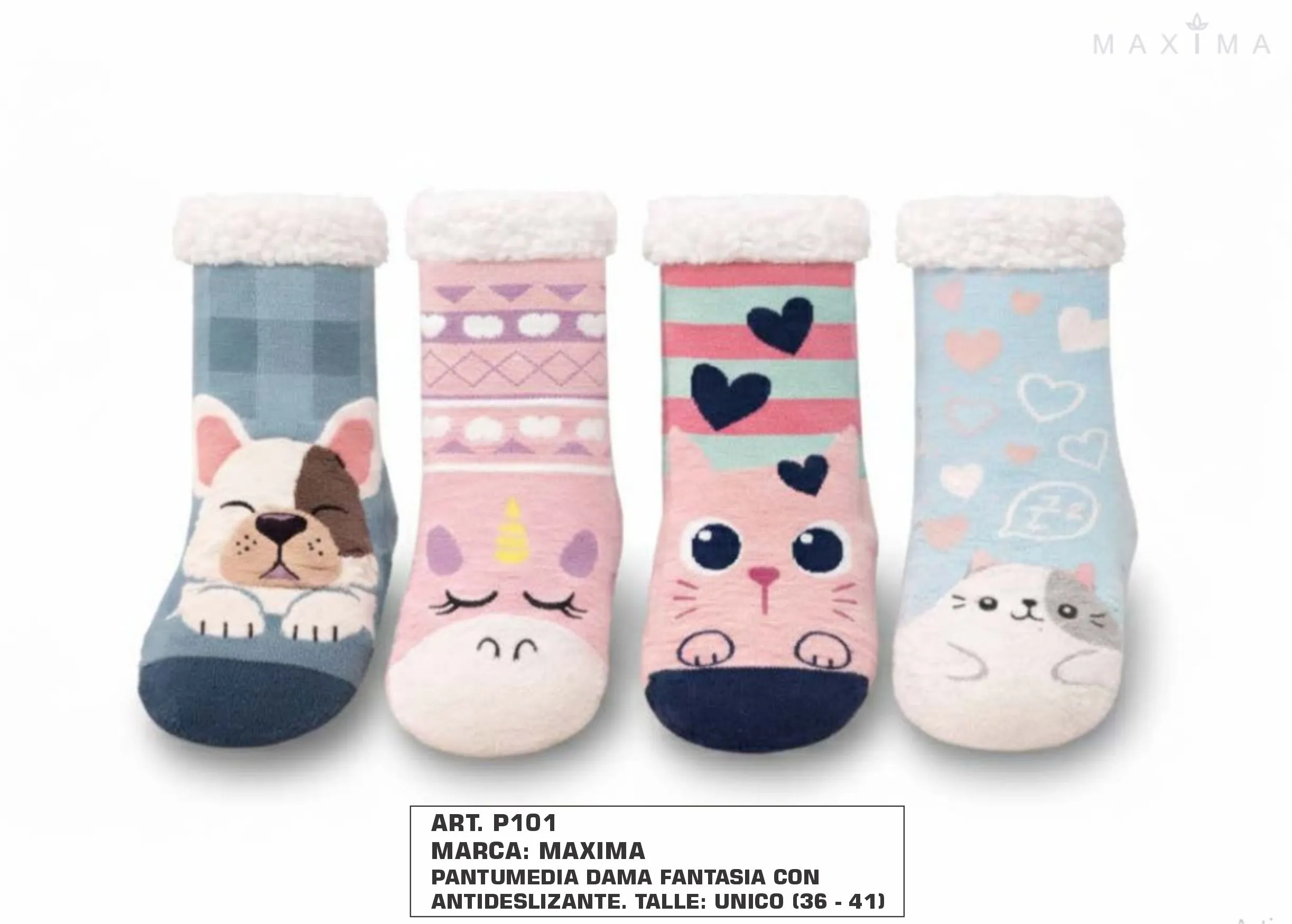 PANTUMEDIA DAMA FANTASIA CON ANTIDESLIZANTE. TALLE: UNICO (36 - 41). COLORES: ESCOCES AERO CON BULLDOG - UNICORNIO ROSA - GATITO ROSA CON RAYAS - GATITO CELESTE